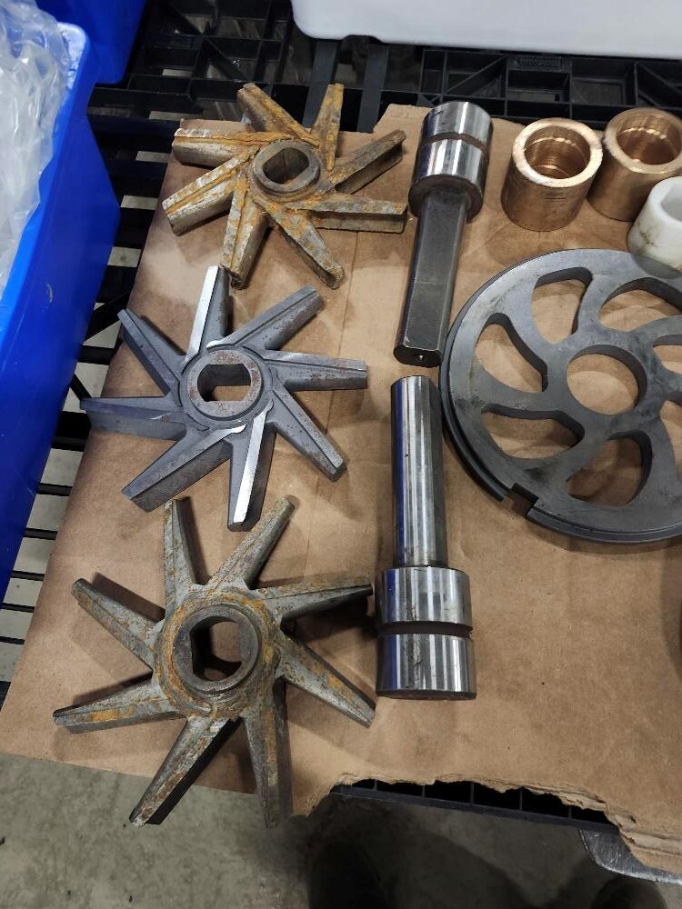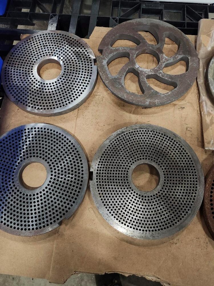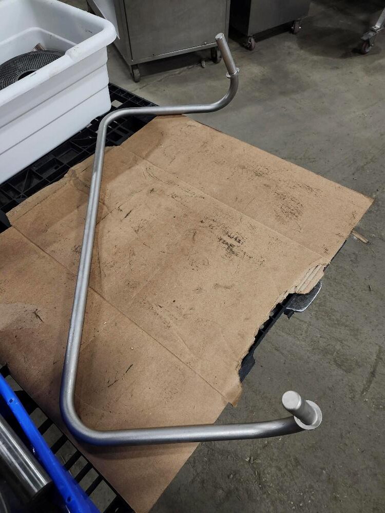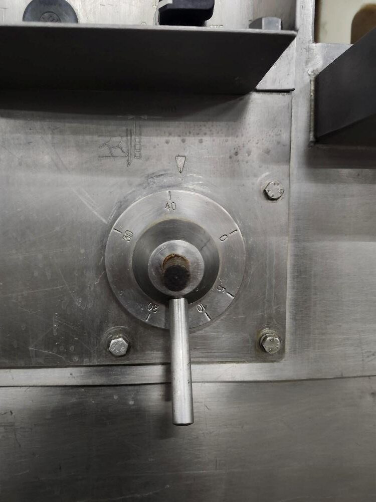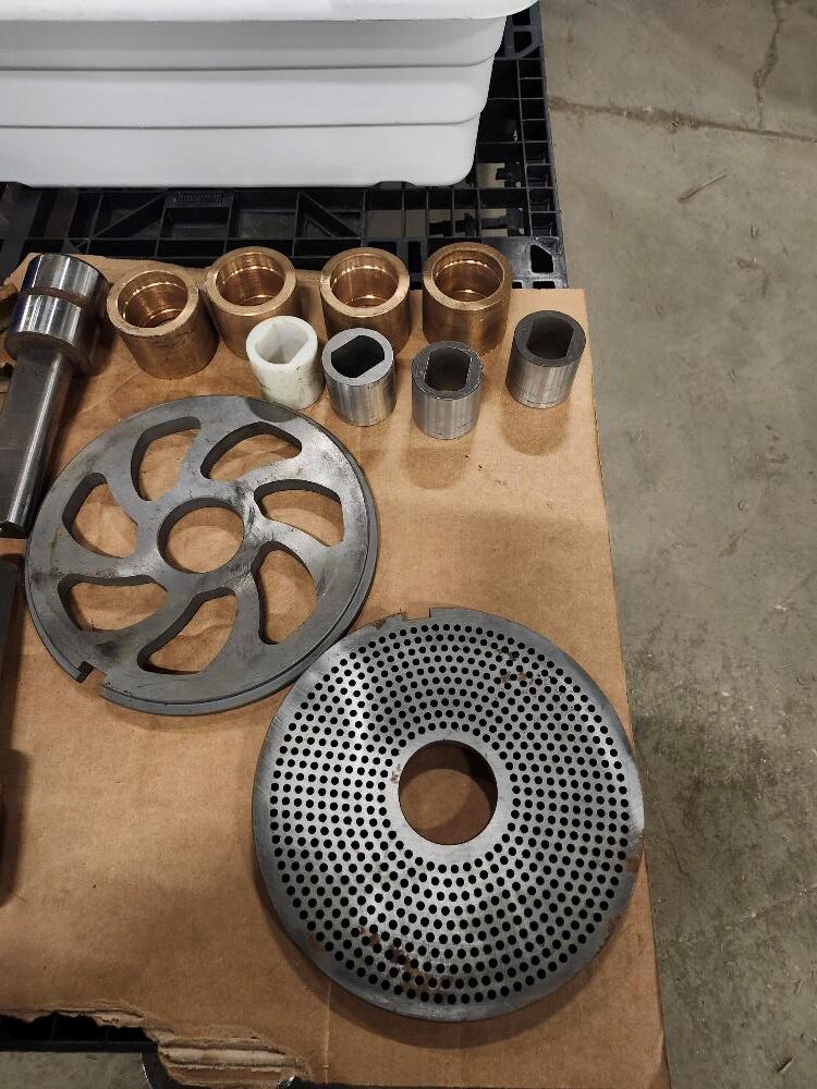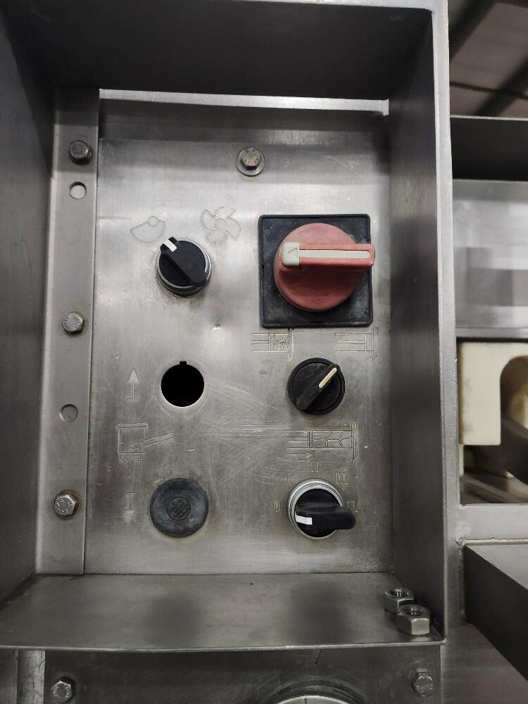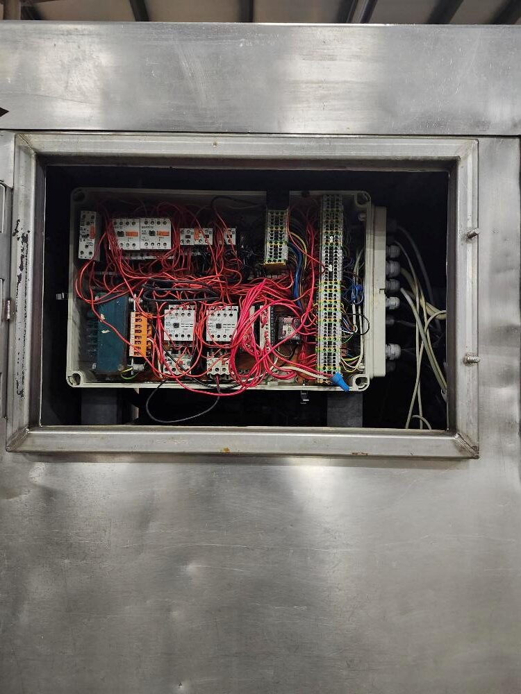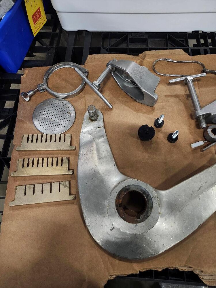 Portable Dicer, 240/480 volts, 3 phase, on stainless steel table, on wheels with cutting blades and other assorted parts, overall dimensions machine: 35" W X 68" L X 82" T.